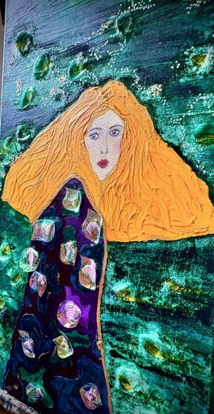 "Blue little Lady" Blattgold/Pastellkreide/Leinwand 30x90cm 2017 (Ausschnitt)